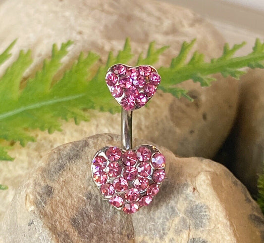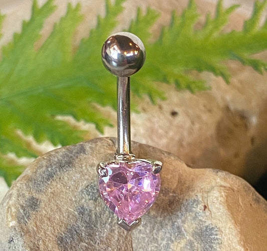 Heart Paved CZ Gem Belly Ring Navel Naval Clear, Purple, Aqua, Pink, Green
