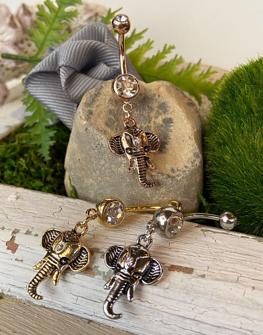 1pc Elephant Head CZ Gem Belly Ring Pierced Navel Naval