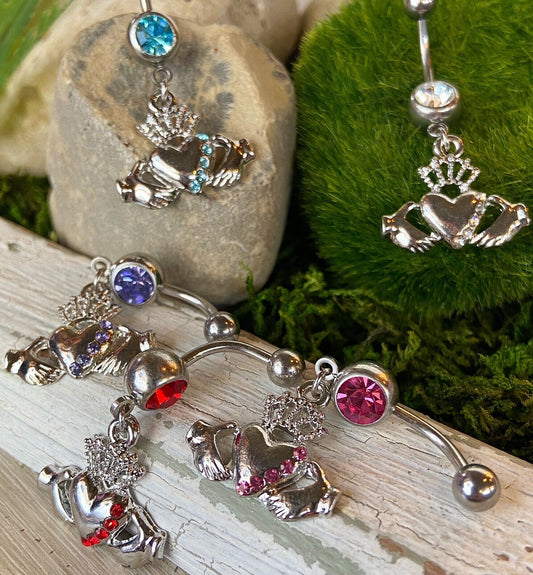 Irish Claddagh Dangle Gem Belly Ring Navel Naval Heart Crown