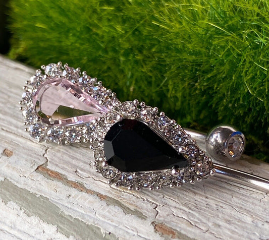 1pc Crystal Paved Tear Drop w/ Mother of Pearl Inlay Belly Pierced Navel Ring