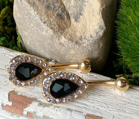 1pc Tear Drop CZ Paved Prong Set Belly Pierced Navel Naval Ring