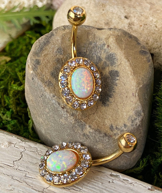 Solitaire Opal Glitter Gem Belly Ring 316L Surgical Steel Navel Naval
