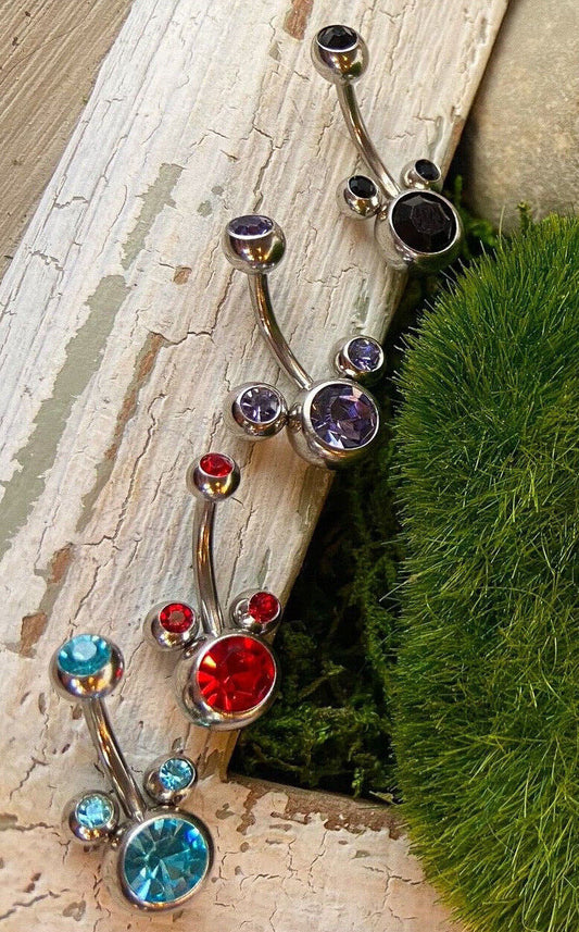 Reverse 4 Opal Stone Belly Ring Pierced Navel Naval Clear, Blue, Green