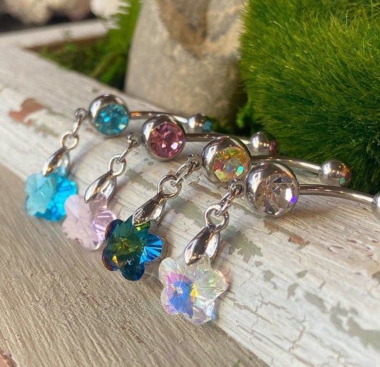 Crystal Ray Prism Flower Gem Belly Ring Navel Naval AB, Clear, Pink, Aqua