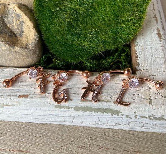 14kt Rose Gold Plated Initial Dangle Belly Ring Pierced Navel Naval Letter