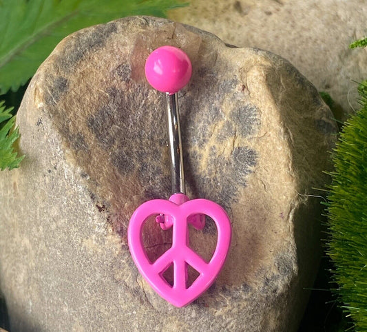 Neon Hinged Heart Peace Sign Belly Ring Navel Blue, Green, Orange, Pink, Purple