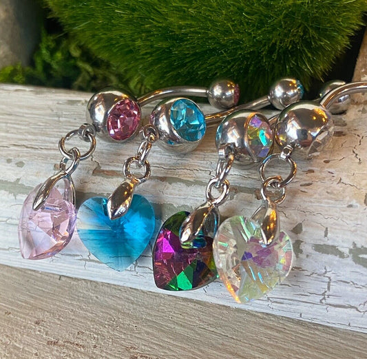 Crystal Ray Prism Heart Gem Belly Ring Navel Naval AB, Clear, Pink, Aqua