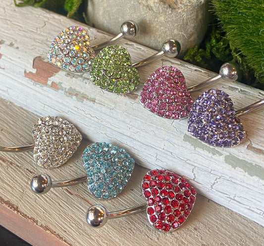 Heart Paved W/ Crystal Gems Belly Ring Navel Naval Body Jewelry