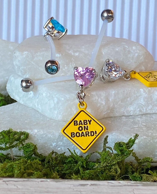 1pc Pregnancy Belly Ring BABY ON BOARD! Sign 1" Bio Flex Maternity Navel 14g