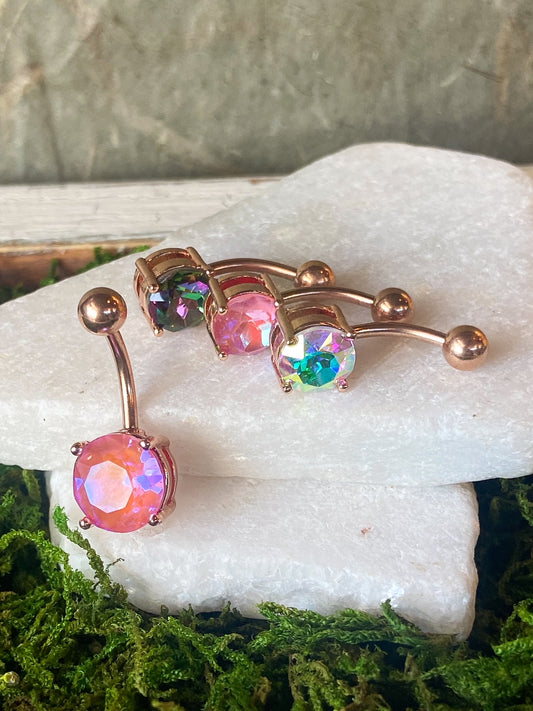 1pc Aurora Borealis Effect Round Crystal Gem Belly Ring Steel Navel Naval