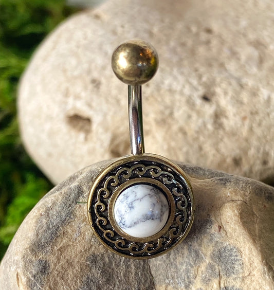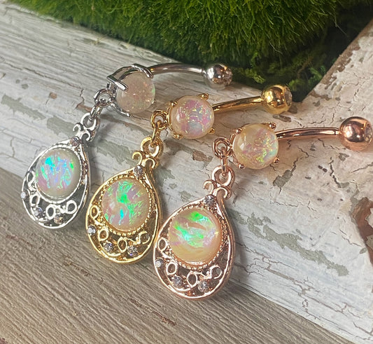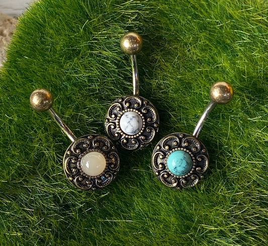 1pc Opal Glitter Center Vintage Filigree Belly Ring Navel Naval