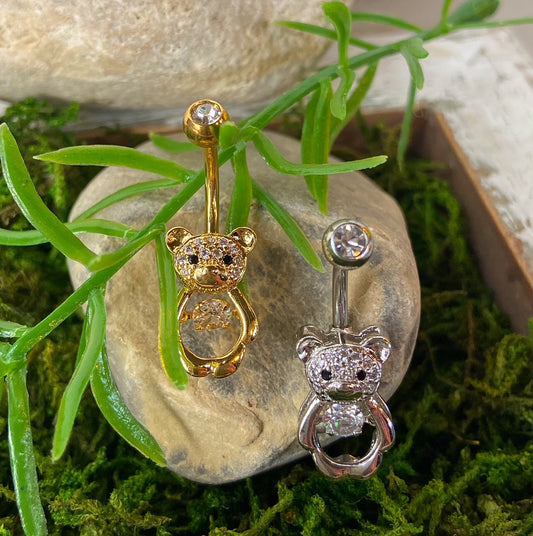 1pc CZ Gem Center Teddy Bear Belly Button Ring Pierced Navel Gold Plated Naval
