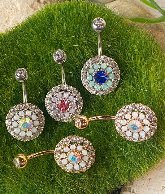 1pc Multi Circle Triple Tiered Crystal and Opalite Belly Ring Leaf Navel Naval