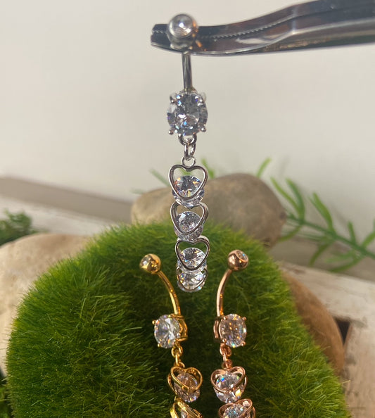 1pc Four Vertical Drop CZ Set Hearts Belly Ring Navel Naval