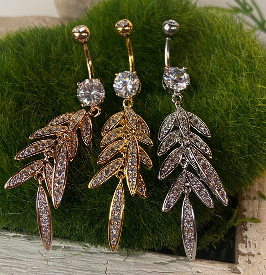 1pc Paved CZ Leaves Belly Ring Leaf Navel Naval