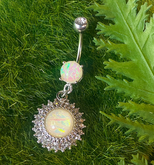Opal Glitter Center Crystal Shield Dangle Belly Button Ring Navel Naval