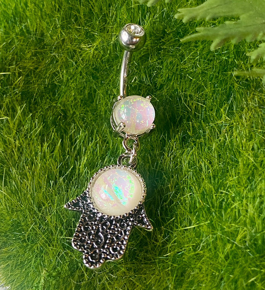 Opal Glitter Center Hamsa Dangle Belly Button Ring Navel Naval