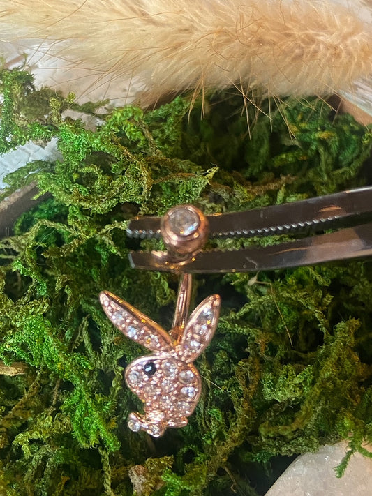1pc Rose Gold Plated CZ Gem Paved Playboy Bunny Belly Ring Navel Naval Licensed