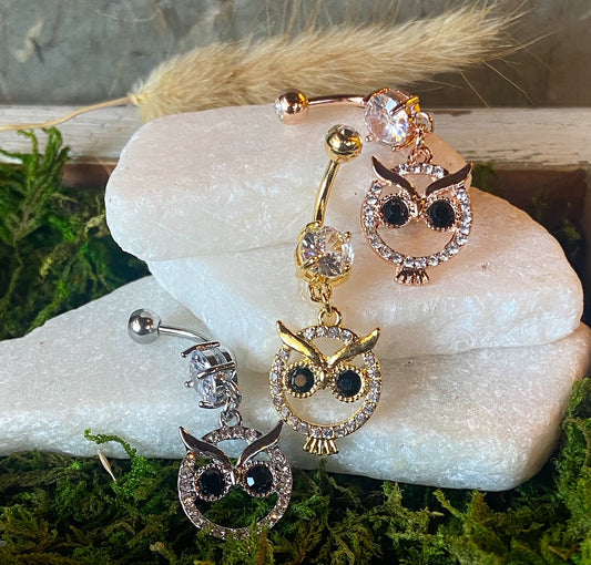 1pc Crystal Paved Owl Belly Ring Pierced Navel Naval Piercing Body Jewelry