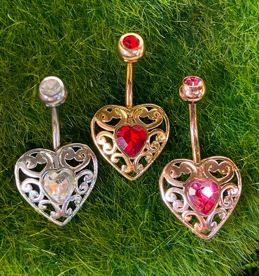1pc Vintage Filigree Heart w/Crystal Belly Button Ring Pierced Navel Naval