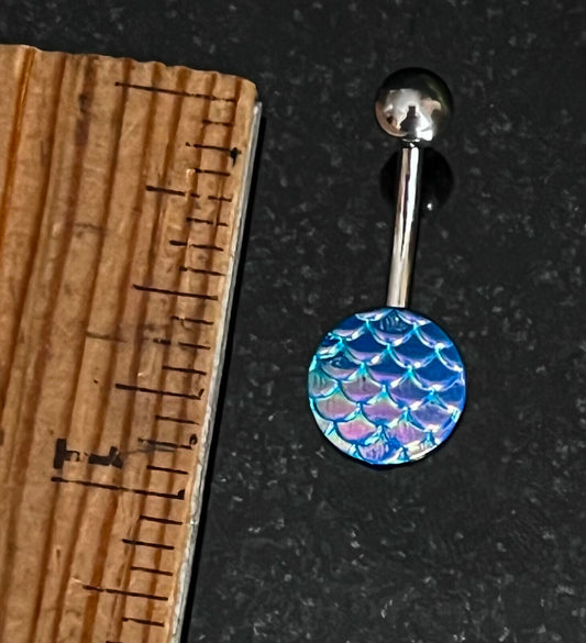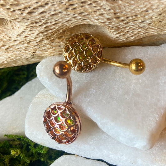 1pc Opal Glitter Encased Casted Fish Scale 14g Belly Ring Pierced Navel Naval