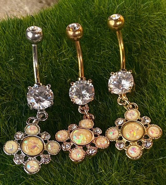 1pc Opal Glitter and Crystal Set Belly Button Ring Pierced Navel Naval