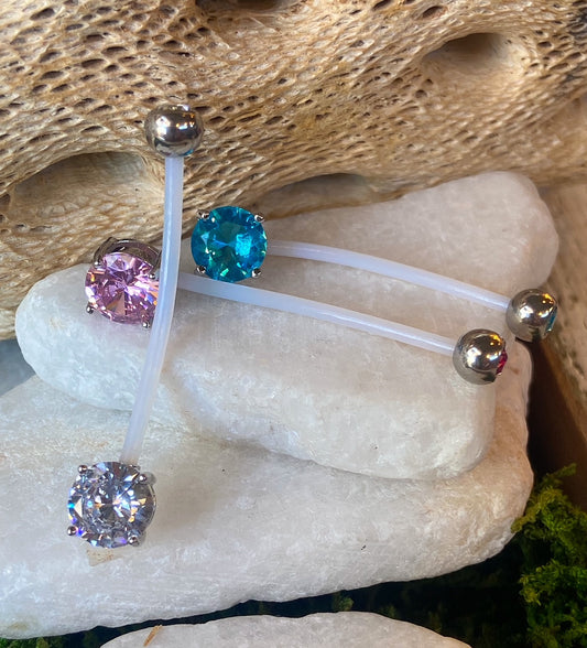 1pc Pregnancy Belly Ring CZ Gem Solitaire 1" Bio Flex Maternity Navel 14g