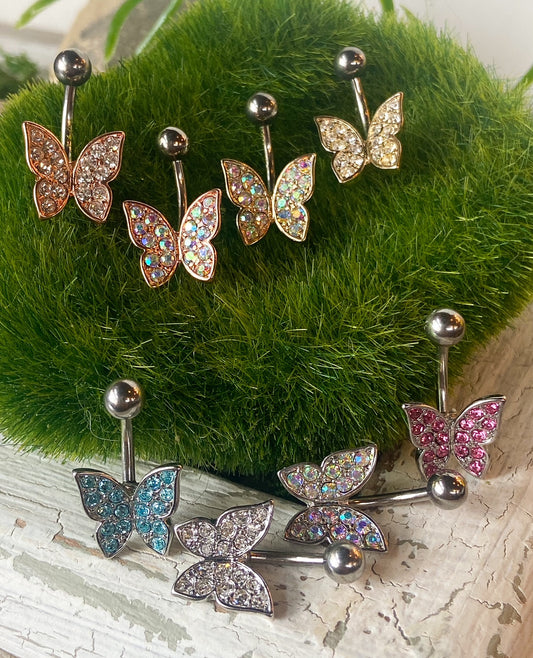Crystal Paved Butterfly Belly Ring 316L Surgical Steel Navel Naval