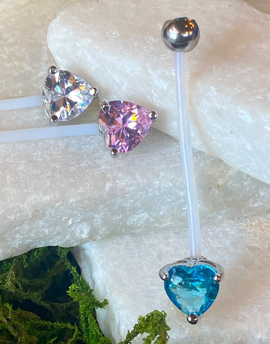 1pc Pregnancy Belly Ring Heart CZ Gem Solitaire 1" Bio Flex Maternity Navel 14g