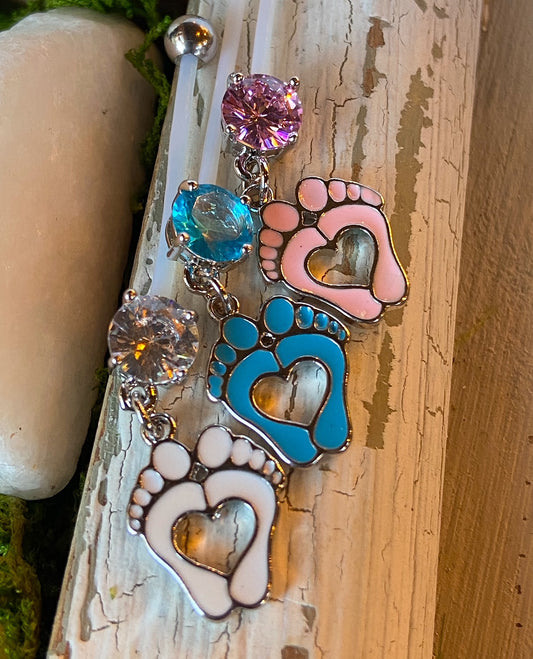 1pc Pregnancy Belly Ring Baby Feet Heart 1" Bio Flex Maternity Navel 14g