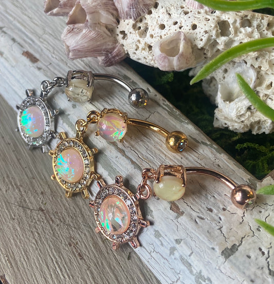 1pc CZ Gem Yacht Ship Wheel Belly Button Ring Pierced Navel Gold Plated Naval