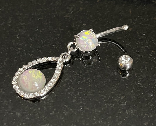 1 Piece Stunning Opal Glitter Center Tear Drop Dangle Surgical Steel Navel / Naval Belly Ring!