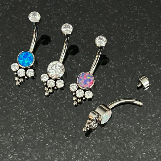 1 Piece Stunning Solid Implant Grade Titanium 4-Gem CZ Cluster Navel/Naval Belly Ring - 14g