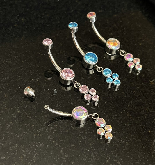 1 Piece Stunning Solid Implant Grade Titanium Trinity Cluster Navel/Naval Belly Ring - 14g