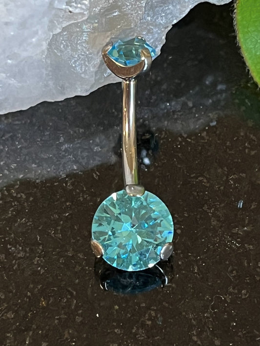 1 Piece Solid Implant Grade Titanium Round Gem Internally Threaded Navel/Naval Belly Ring - 14g