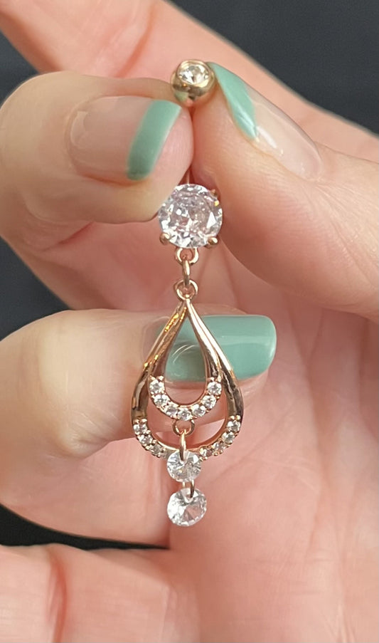 1 Piece Stunning Double CZ Gem Teardrop Belly Button Ring Navel / Naval Belly Ring - 14g - 10mm