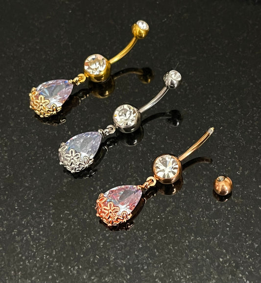 1 Piece Unique Floral Filigree Tear Drop Gem Belly Button Ring Navel / Naval Belly Ring - 14g - 10mm