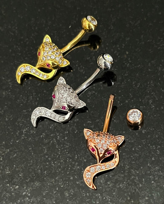 1 Piece Unique Paved CZ Gem Fox Navel / Naval Belly Button Ring - 14g - 10mm