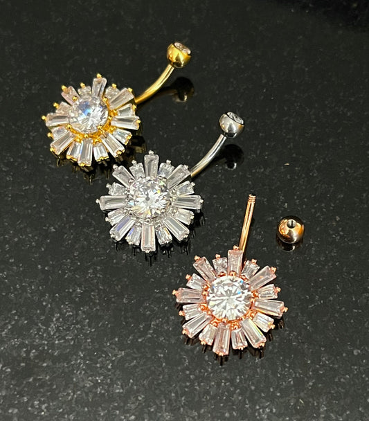 1 Piece Stunning Baguette CZ Gems Sunburst Navel / Naval Belly Button Ring - 14g - 10mm
