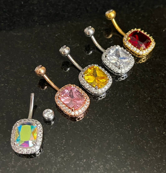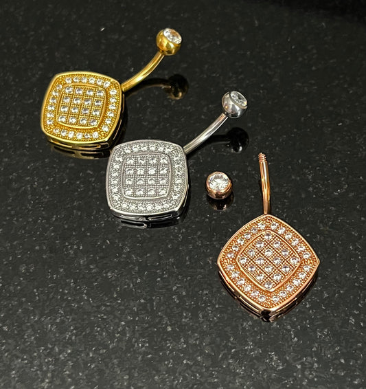 1 Piece Unique Paved CZ Gems Square Navel / Naval Belly Button Ring - 14g - 10mm