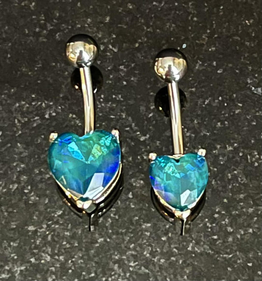 1 Piece Stunning Prong Set Aurora Borealis Effect Heart Crystal Gem Navel/Naval Belly Ring - 14g - 10mm