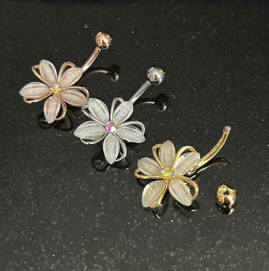 1 Piece Stunning CZ Gem Center Wire Flower Belly Button Ring Navel / Naval Belly Ring - 14g - 10mm
