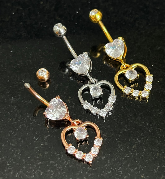 1 Piece Beautiful Paved CZ Gems Heart Navel / Naval Belly Button Ring - 14g - 10mm