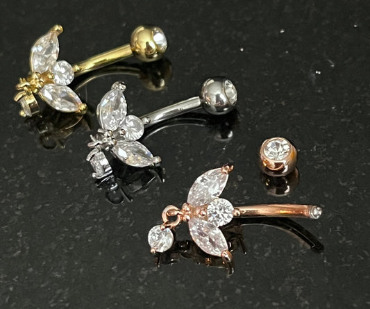 1 Piece Stunning Marquise CZ Gem Sprout Dangle Cubic Zirconia Navel / Naval Belly Ring - 14g - 10mm