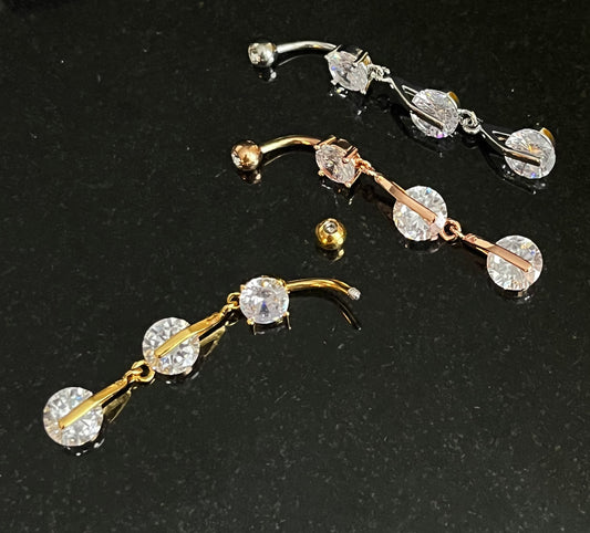 1 Piece Stunning Triple Round Illuminating Stone Dangle Ring Navel / Naval Belly Ring - 14g - 10mm