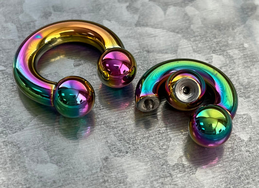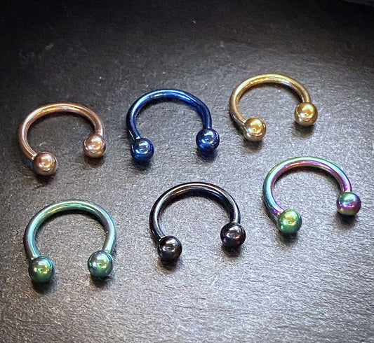 1 Piece Unique Rainbow Titanium Anodized Circular Barbell Horseshoe Ring - 18g thru 2g with Assorted Internal Diameter and Ball Size!!