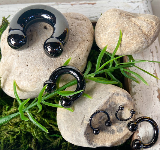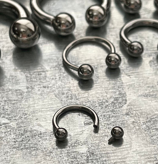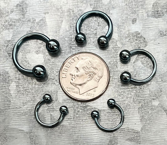 1 Piece Unique Matte Black IP Circular Barbell Horseshoe Ring - 16g, 14g- Internal Diameter 6mm, 8mm, 10mm - Ball Size 3mm or 4mm!