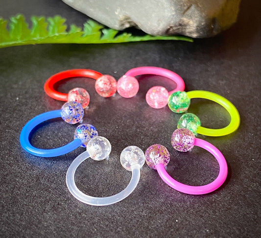 PAIR Ultra Glitter Flexible Circular Barbells Septum Eyebrow Nipple Tragus Ring