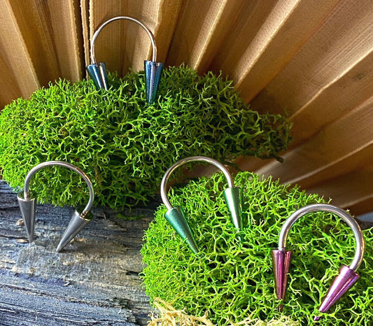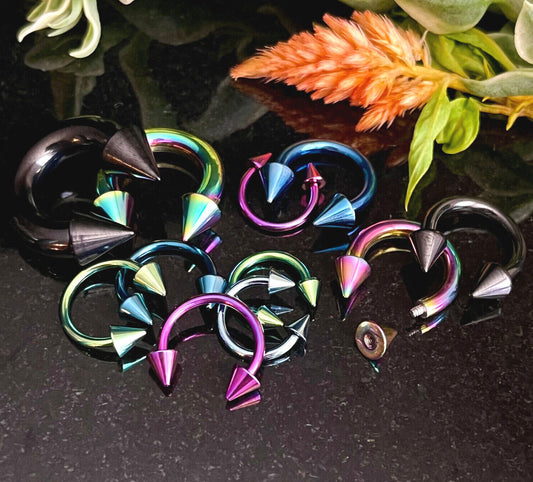 PAIR Titanium Spiked Circular Barbells Horseshoe Septum, Eyebrow, Nipple Rings