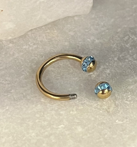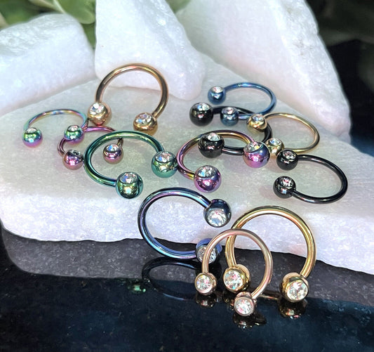 1pc Gemmed Ion Plated Circular Barbell Horseshoe Lip Nipple Septum Ring 16g 14g